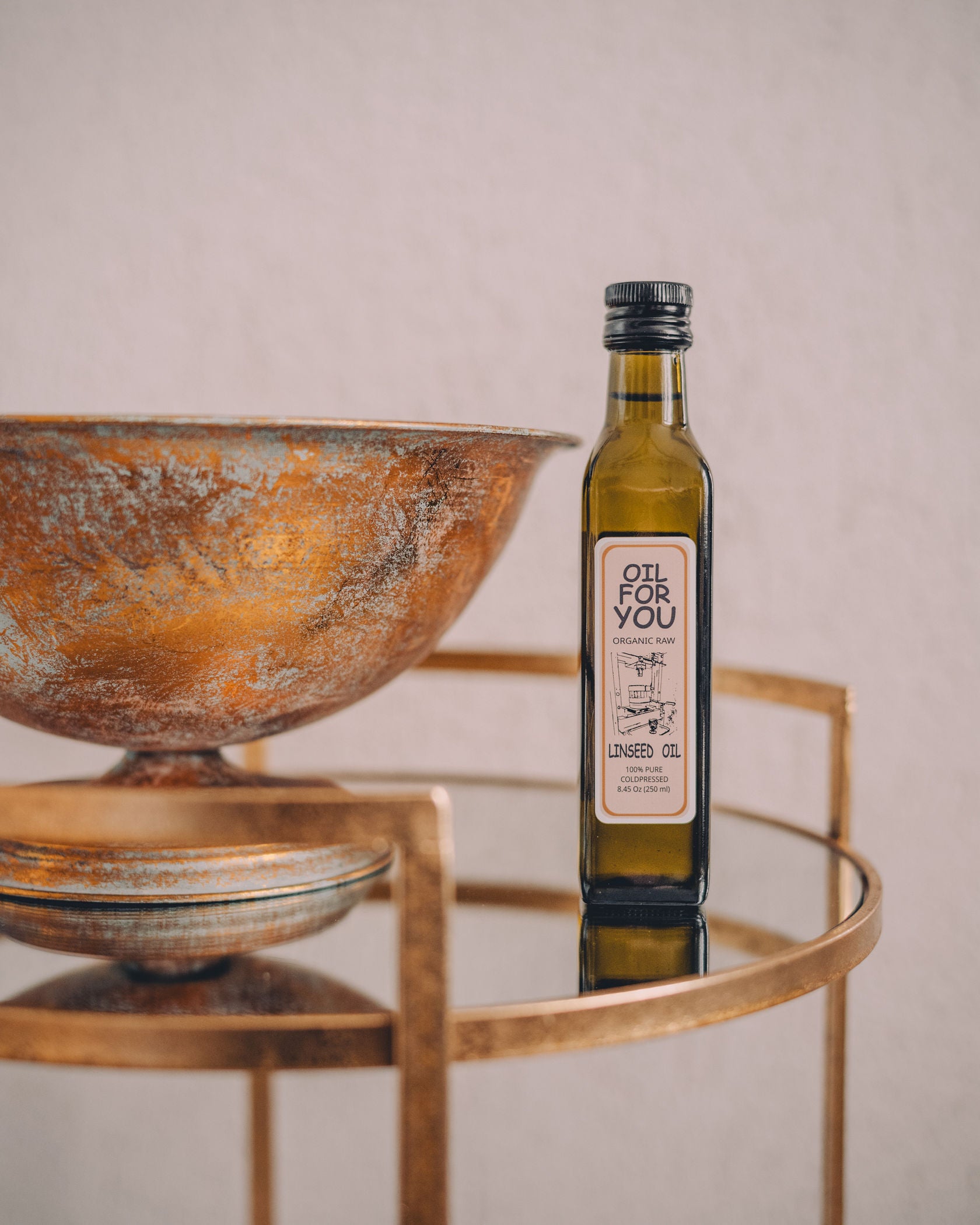 Aukstā spieduma eļļa ar presēšanas metodi muciņā